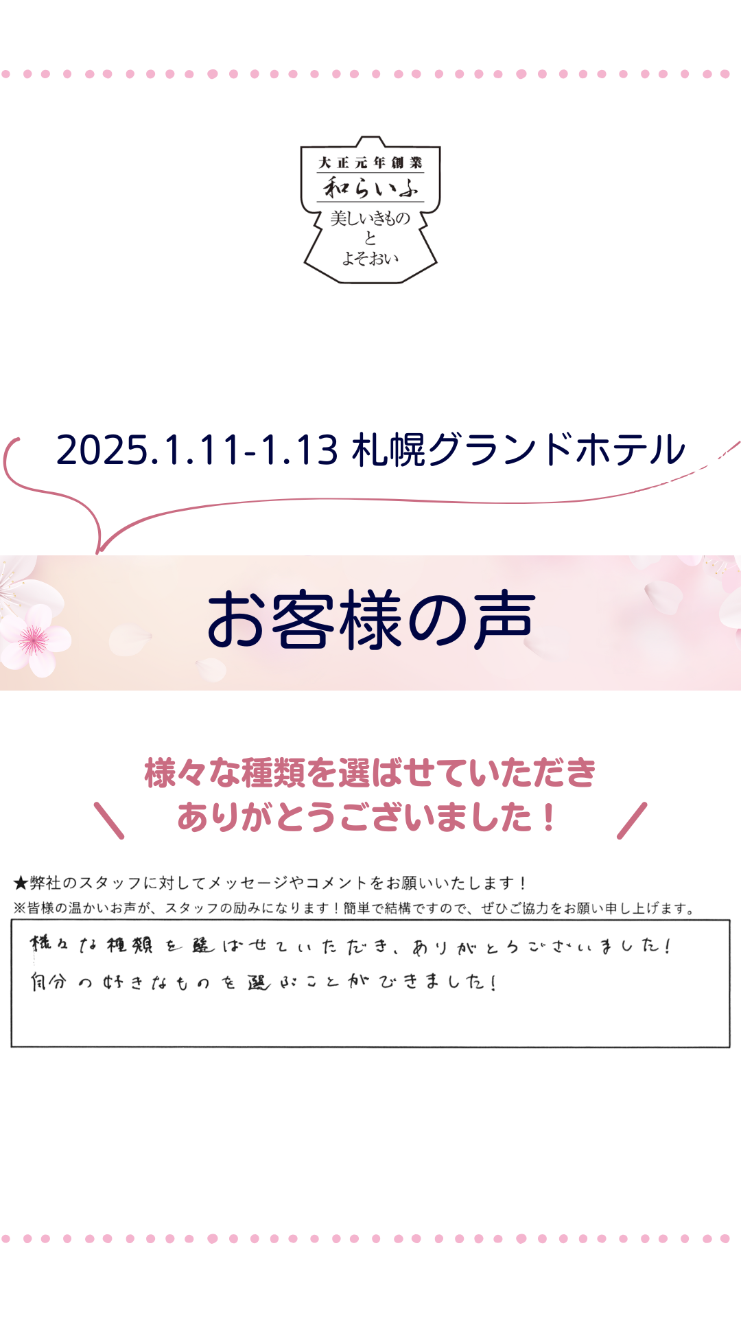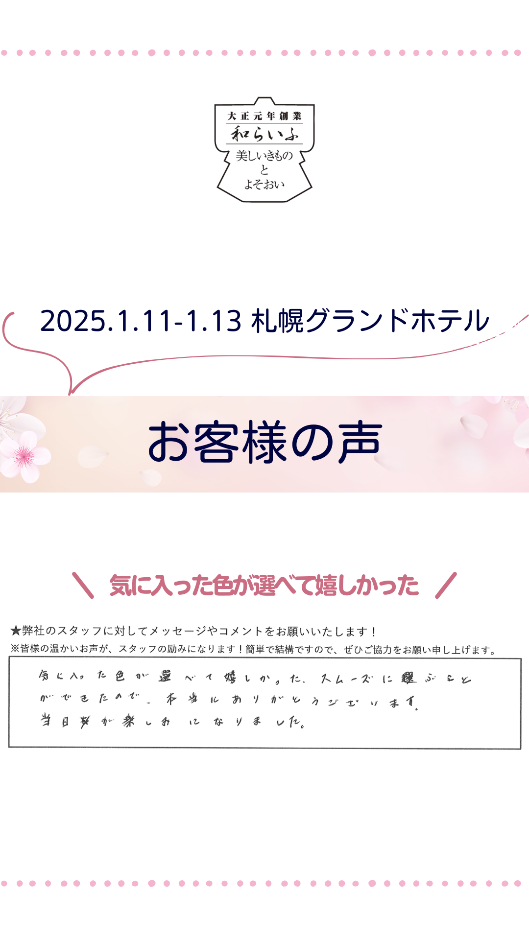 お客様お喜びの声