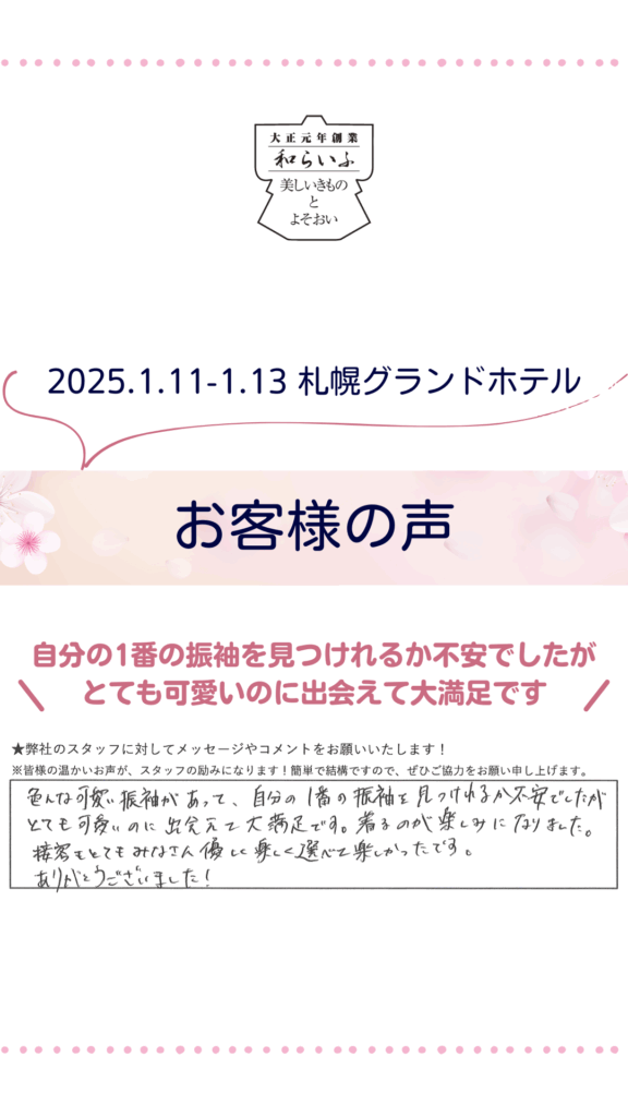 札幌で成人式の振袖販売レンタルは振袖店「和らいふ」